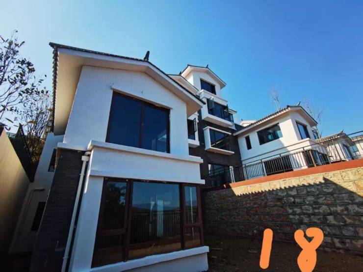 18栋主体已完成、外墙涂料已完成、屋面瓦已完成,庭院院墙完成,入户门完成。栏杆安装完成、室外管网埋设完成、室外景观完成,燃气管网安装完成;