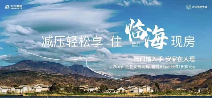 大理大华·锦绣华城,建面约75㎡全装湖居两房,首付约8万起,月供约1800元起!关注大理大华·锦绣华城的朋友可前往售楼处现场看房,咨询房源信息请拨打电话400-156-0036