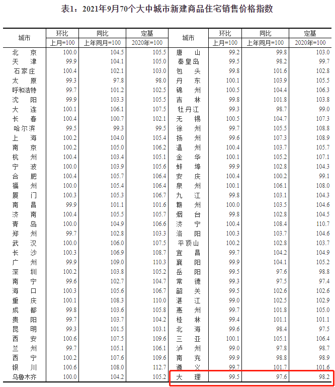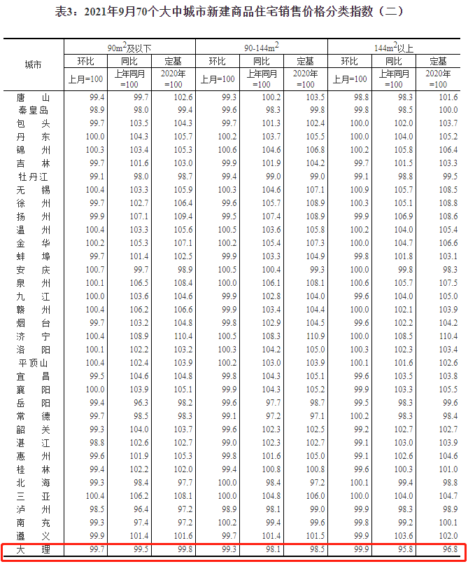 较新!9月大理新房价格环比下跌0.5% 二手房下跌0.4%
