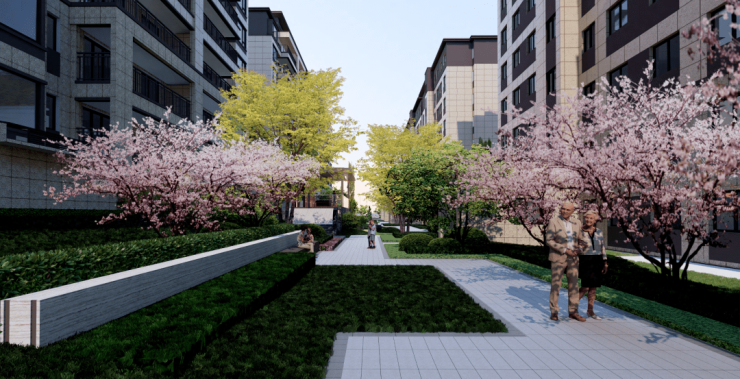 瑞园在搭建舒适放松,贴近自然的景观空间的同时,亦为你打造健康、有氧、富有活力的运动空间。作为跑道周边主要花系之一的樱花,浪漫的花意搭配高低错落的繁花,鲜艳立体的园区景观扑面而来,让你在享受健康活力的同时,亦给生活更多浪漫与色彩。