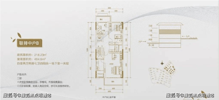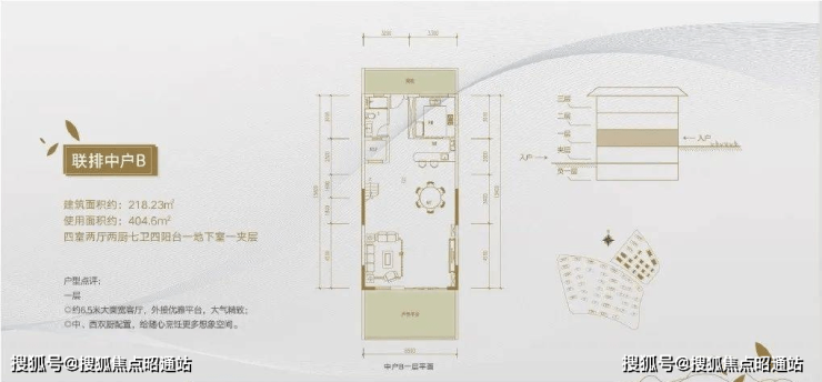 A2地块还有别墅产品,面积为218平米的中户和242平米的端户。联排中户建筑面积218平米,使用面积404平米,地上三层,地下二层(含夹层);端户建筑面积242平米,使用面积445平米,地上三层,地下二层(含夹层),别墅产品预计明年推出,售价待定。