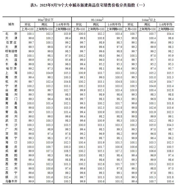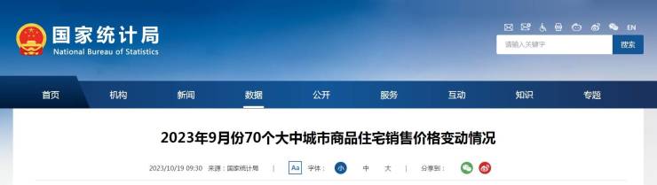 2023年10月19日,国家统计局发布2023年9月份70个大中城市商品住宅销售价格变动情况!