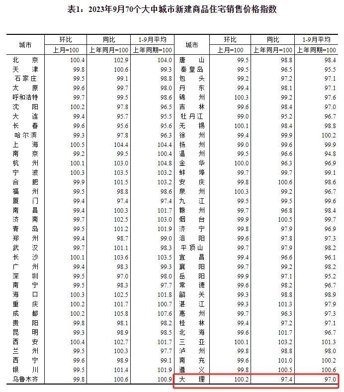 最新!9月大理新房价格环比上涨0.2% 二手房价格环比下跌0.5%