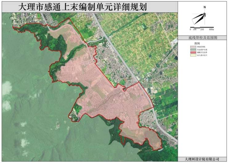 大理市感通上末编制单元东至大凤路、西至苍山脚、北至黑龙溪、南至苍山佛顶峰山脚,总规划面积389.47公顷,其中城镇开发边界规模295.4540公顷。
