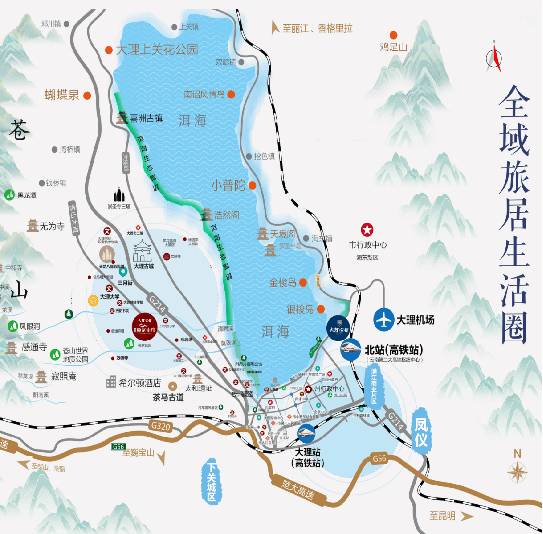 大理公馆交通十分便捷,距离机场10分钟车程,距离目前的高铁站15分钟,到下关城区20分钟,未来滇西第二大高铁枢纽站(洱海站(2027年4月底通车)),车程5分钟,另外26公交车以及海东专线都途径我们项目,交通非常便捷。