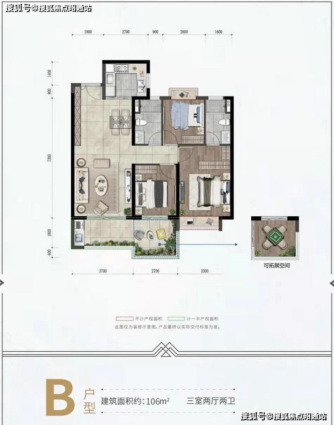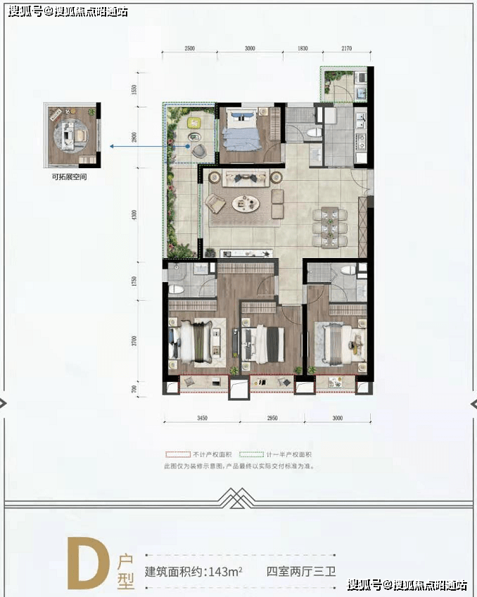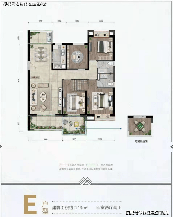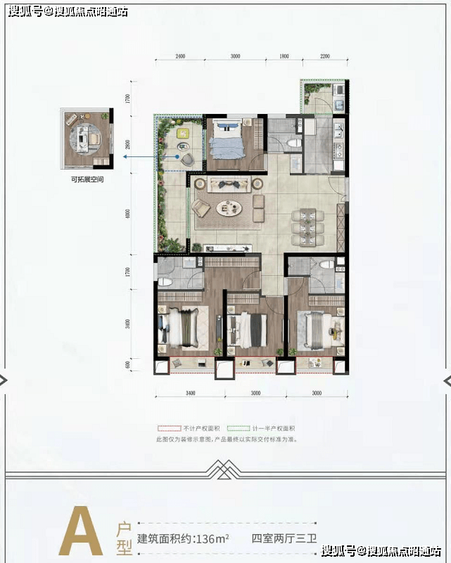 34地块总建面约为58万方,其中容积率3,建筑密度仅有18%,绿地率高达45%,共24栋高层住宅,均为南北向纯板式产品。住宅产品面积区间为79-183㎡,两房到五房的户型设计,总户数约3200户,车位配比1:1.15约3680个。小区共有4个出入口,三个为车行出入口,在东侧、南侧和北侧,地下车库入口布置于外围道路,小区入口即车库入口,有效实现人车分流。