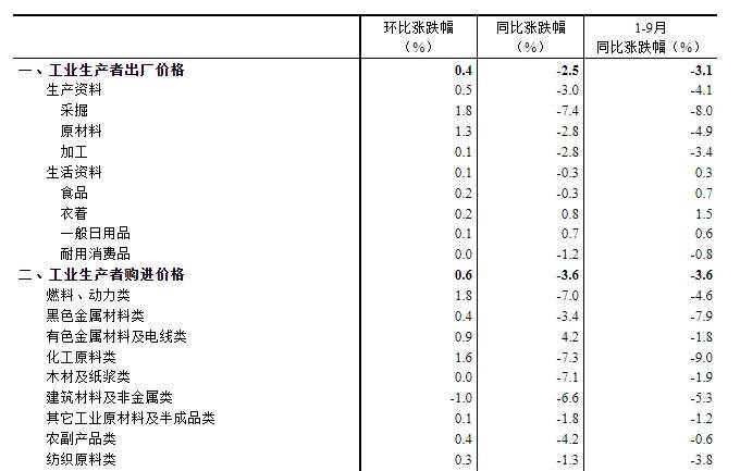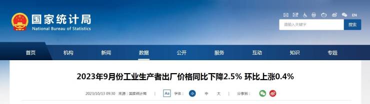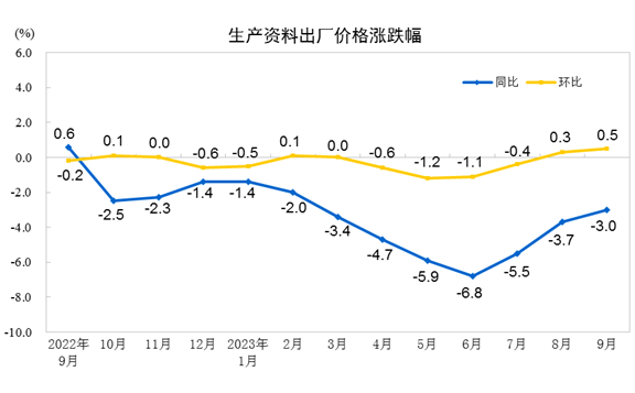 2023年9月份工业生产者出厂价格同比下降2.5% 环比上涨0.4%