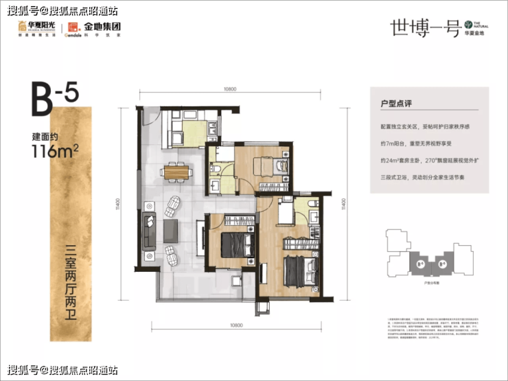 除此之外,华夏金地·世博一号,打造建面约104-175㎡生态美学住区,全项目全部为三房、四房户型,聚焦在城市改善型精英客户,以高端的生态居住环境,建筑品质,园林景观,精装品质,服务品质,为城市高端阶层定制别样的生活享受。