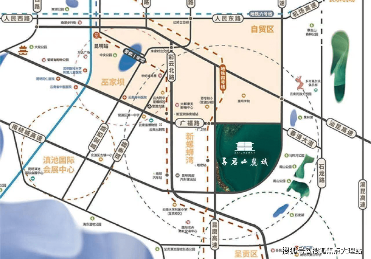 子君山麓城以昆明原生城央山地为基址,依托山势和植被,在保留原有自然环境下“化蝶重生”:约3000亩巨型规划,超大城市公园为主体为内核,以匠心思考重塑自然与人的和谐共生。子君山麓城总占地约3000亩,其中约1800亩为原生森林植被恢复工程,逾半数的土地将以一个完整的自然界呈现:溪流、池塘、乔木、花草、鸟类、小动物,保留城市最珍贵的绿心。