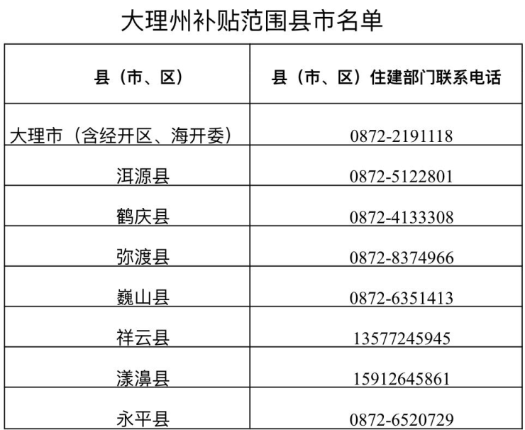 大理州购买新建商品住宅补贴公告